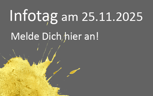 Dann komm am 29.11.2025 zu unserem Infotag! Die zentralen Informationsveranstaltungen finden in der Aula statt: